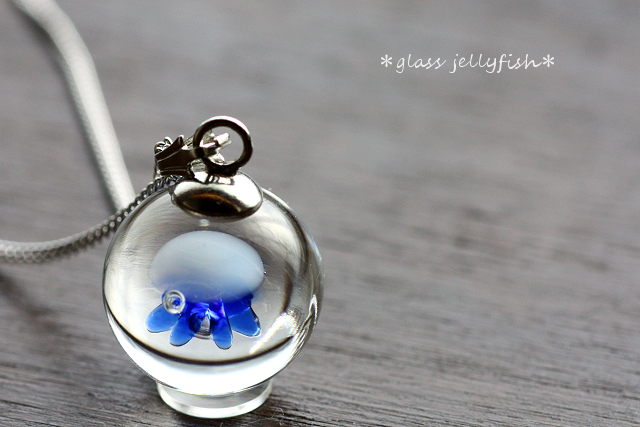 透明感のあるクリアなガラスの中にかわいいクラゲを閉じ込めたネックレスです。