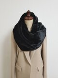 頭の上からすっぽりとかぶるだけで簡単に着けられるシングルタイプのスヌードです。