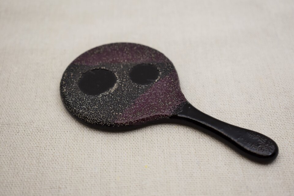 黒漆の上から白石目塗り砥出し、一部に紫漆。