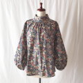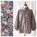花模様をまとうハイネックブラウス(レトロフラワー:パープル)