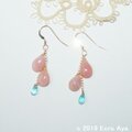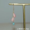 ピアスパーツに、チェーンを下げ、ピンクオパールAA++のペアシェイプ プレーンを、片耳に2個下げました。