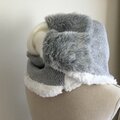グレーと白が混ざったウールとふわっとした肌触りの白のニット、毛足のながシルバーのエコファーを合わせて、裏にプードルファーを組み合わせました