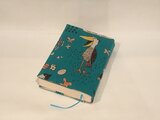 動かない鳥ハシビロコウ。孤高の怪鳥のさまざまな様子が描かれた布で、文庫本カバーを作りました。