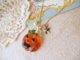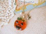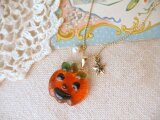 ガラスフュージングという技法で、丁寧に手作りいたしました、小さなハロウィン・モティーフのネックレスです。