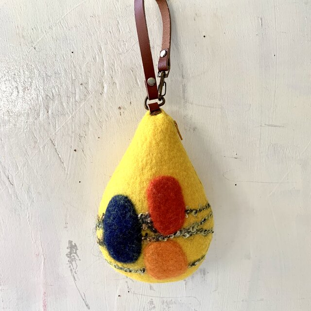 羊毛フェルトのカラフルしずくポーチ(イエロー)