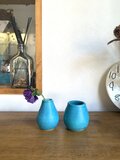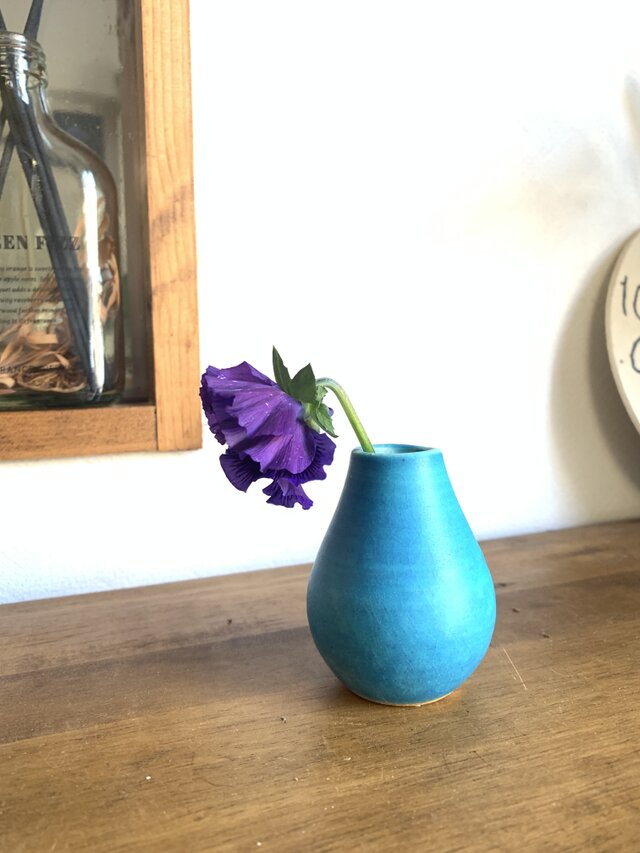 マットな質感の綺麗なターコイズブルーの花瓶です。