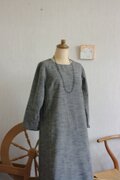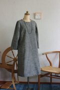淡いカーキ色の久留米絣でワンピースを作りました。