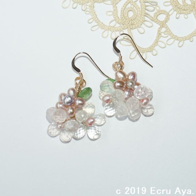 今回は2種類のクォーツと淡水パールを集めてお作りしましたピアスですので、良かったらご覧下さいm(__)m