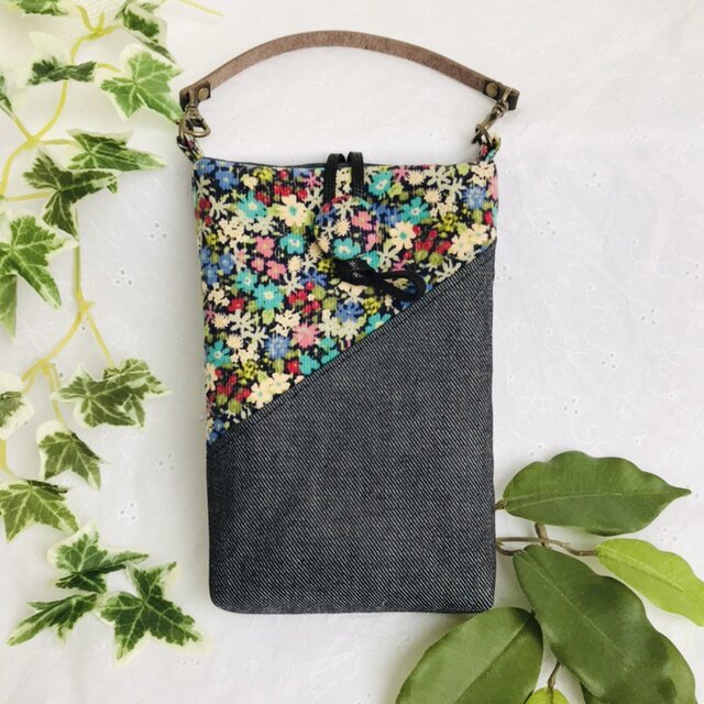 表の布はデニム生地とコーデュロイの花柄の生地を合わせています。