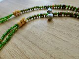 ベネチアのグリーンのシードビーズとコーヒービーズと呼ばれる木の実(コーヒーではありません)を合わせて