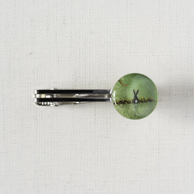 草原のうさぎを描いた絵を、樹脂で閉じ込めたネクタイピンです。