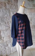 【HN様オーダー画面】英国・体形カバー・タータンチェック・ネイビー・普段着えり無しブラウス