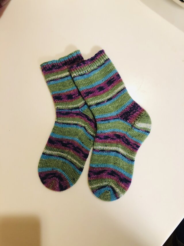 ドイツのOpal糸で一針一針、丁寧に編みました。