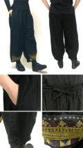 L~LLサイズ、ジョムトン手織り綿のもんぺ、ヤオ刺繍付きパンツ黒、オールシーズン