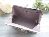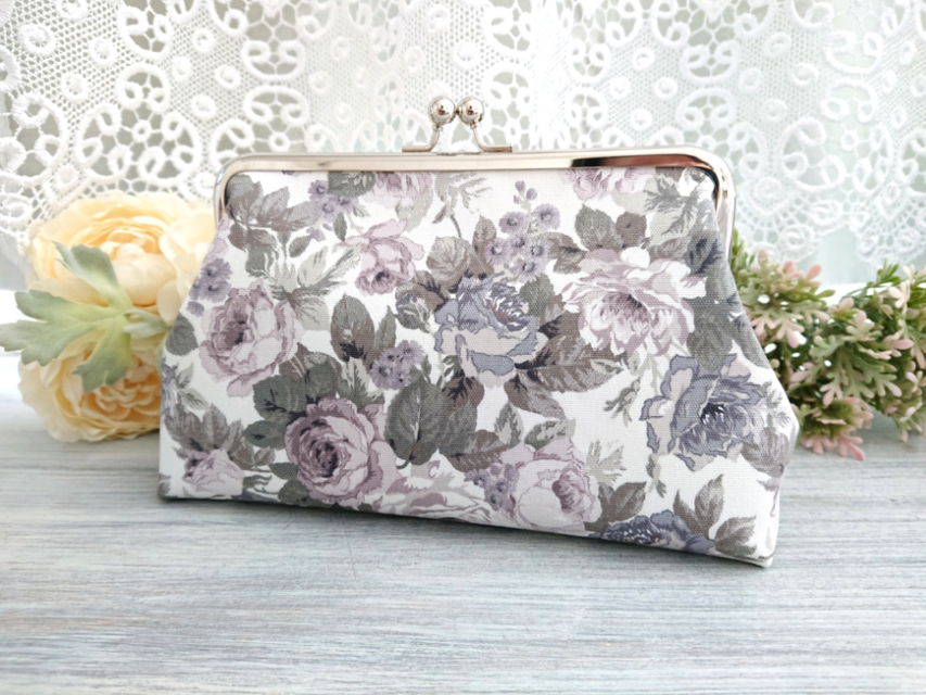 モーブ色のローズが素敵なアンティーク風がま口ポーチでございます
