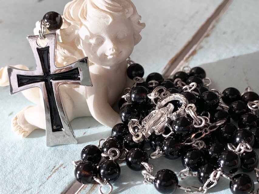天然モリオン(カンゴーム)を使用したロザリオです。