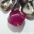 一番下に、芥子パールを引き立てる事が出来るように、ワインカラージェードの6面カットを一粒下げました。