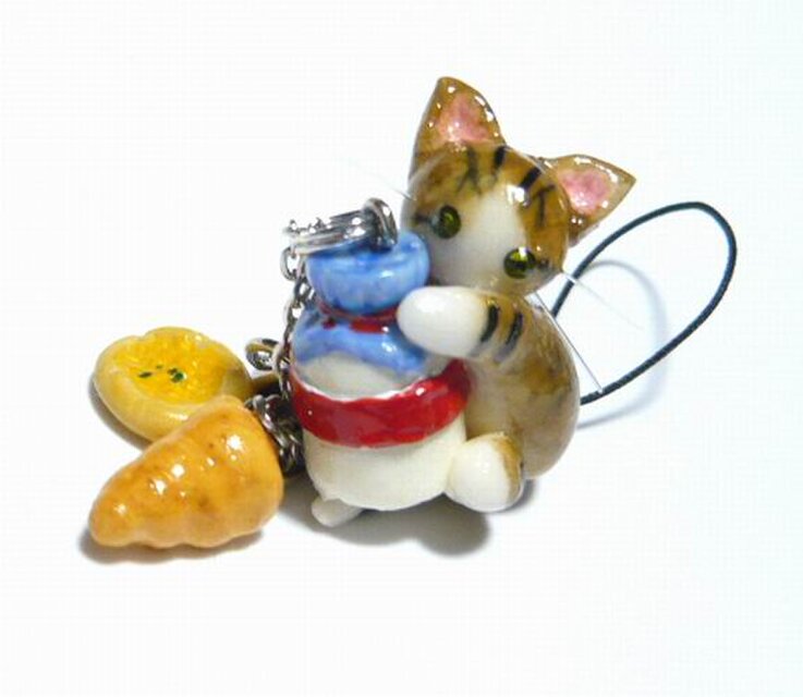 にゃんこのしっぽ○ミルクとパンのストラップ○きじ白猫○猫