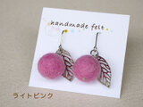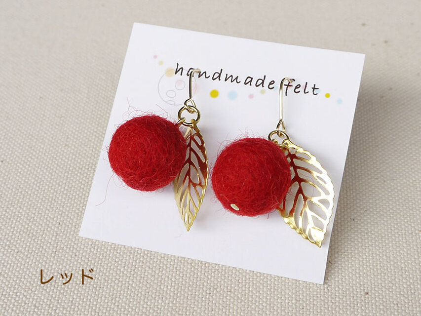 軽くてやさしい 小さなフェルトボールイヤリング/ピアス カラフル (リーフ形パーツ) 選べるカラフル16色