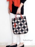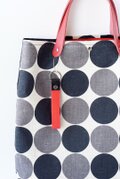 黒とグレーのリネンドット生地を基調に、表と裏でデザインの異なったフラットトートバッグを作りました。