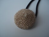 ベージュの糸に、アンティークゴールドのビーズを編みこんだヘアゴムです。
