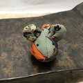 藍木綿のパッチワークロープ 色々な 古布が 美しく縫いあわされ 見飽きる 事がありません。可愛い童がロープを 引っ張っているのも 面白い。大きめのマグカップ 置きとして 使うことに! 魔除けの唐辛子付き お洒落なプチプレゼント とっても 嬉しいです。 包装の魔除けも コロナ退散願いに!