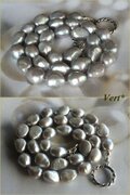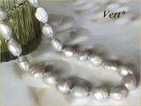 《受注品》メタリックシルバー大粒バロック(ライス風)淡水パールグリフィンショートネックレス(45)