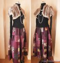 SOLD 再 Dreamin' リネン 絵画なパッチワーク ボリューム ティアードスカート グレープ ヴァイオレット
