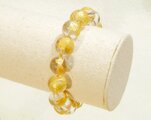招き猫と九尾の狐、玄武が描かれた水晶を使ったブレスレットです(水晶の絵柄は彫ってあり、その上から金色に塗装されています)。