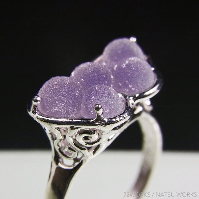 ぶどうの房のようなカルセドニーを、蔓をイメージした台座に乗せたリング。