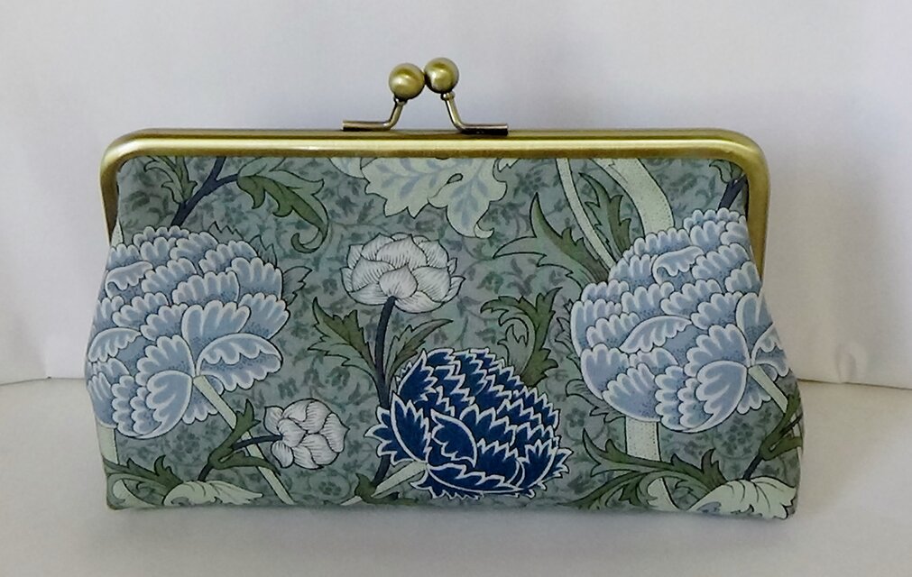 ウイリアムモリス 斜めS字の花とアラベスクで作りましたがま口コスメポーチです