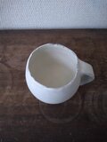 マット釉を掛けた粉引きのマグカップです。形と優しい色合いが特徴です。