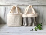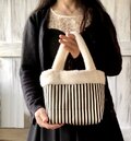星月猫★リバーシブルボアトートバッグ 細ストライプオフホワイト どっちが表でも最高に可愛いあったかバッグ ミニトート