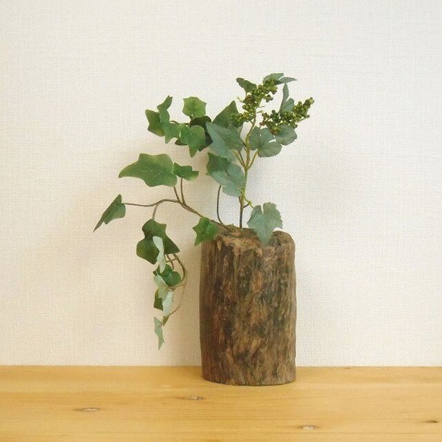 一方の面は流木の割れ目より、中に入れたガラス瓶が見えます。