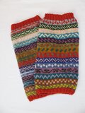 100色の毛糸から選んで一針一針編んだ、カラフルなフェアアイルのレッグウォーマーです。