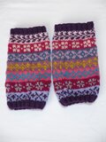 100色の毛糸から選んで一針一針編んだ、カラフルなフェアアイルのレッグウォーマーです。