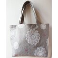 ドイリーとリボンのミニトートバッグ♪グレー 29cm×17cm マチ10cm