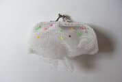 本体は細いレース針を使い、テグス糸で編んでありますので、編み目が細かく、しっかりしています。