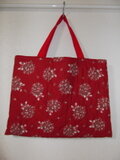 赤地に花束柄のキルティング生地のレッスンバッグです。