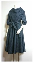 ブラウスは、1950年代風のオフタートルで、レトロな衿のデザイン。