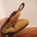 片面に刺し子をした生地、もう片面はスウェードを使っています。