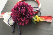 金銀の水玉柄の生地を用いて「帯」を結ぶ様に立体的にリボンを製作しました^^