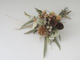 シャビーグリーンのユーカリとブラウンやアプリコットピンクの素材で