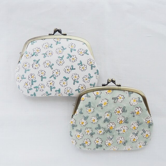 ■木版プリントの仕切りがま口財布 / hanauta■ amande(adm-hn)