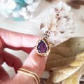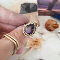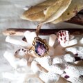 濃く神秘的なカラーのアメジストを使いました。優しいカットが施されていて光りを透かすパープルに見える時もあれば美しく光るブラックに見える時もあり brassと組み合わせる事でアンティークのような素敵な表情をみせてくれます