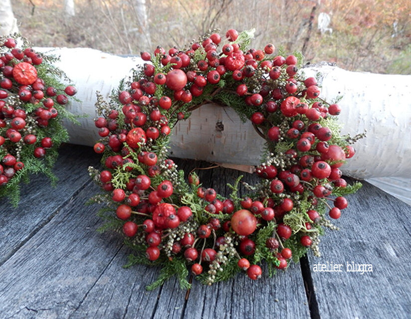 使用材料 タチカズラ、ノイバラの実、ローズヒップなど。