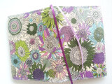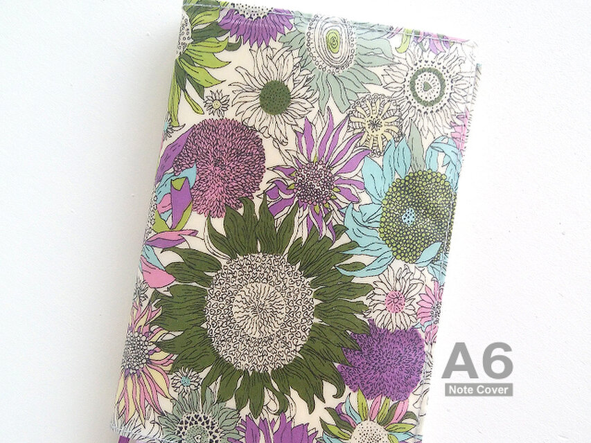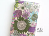 リバティの人気生地、Small Susanna スモールスザンナ(パープル)のラミネート生地(つや無)でほぼ日手帳 オリジナル (A6 文庫サイズ)の手帳カバーを作りました。