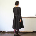 ┗ポケットやファスナー、ボタンなど余計な装飾を一切はぶき、シンプルを極めたワンピースです。その分小物やアクセサリー、着る人を引き立てます。