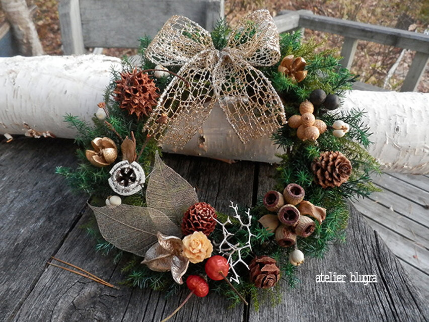 しっとりした大人色のリースで、とても素敵です。 毎回、素敵な作品をありがとうございます。