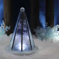 ツリー下部は すりガラスになってクリアな結晶が浮かび上がり、その上からは結晶が らせん状に上っていき、どの方向から見ても幻想的な雰囲気のツリーになりました。